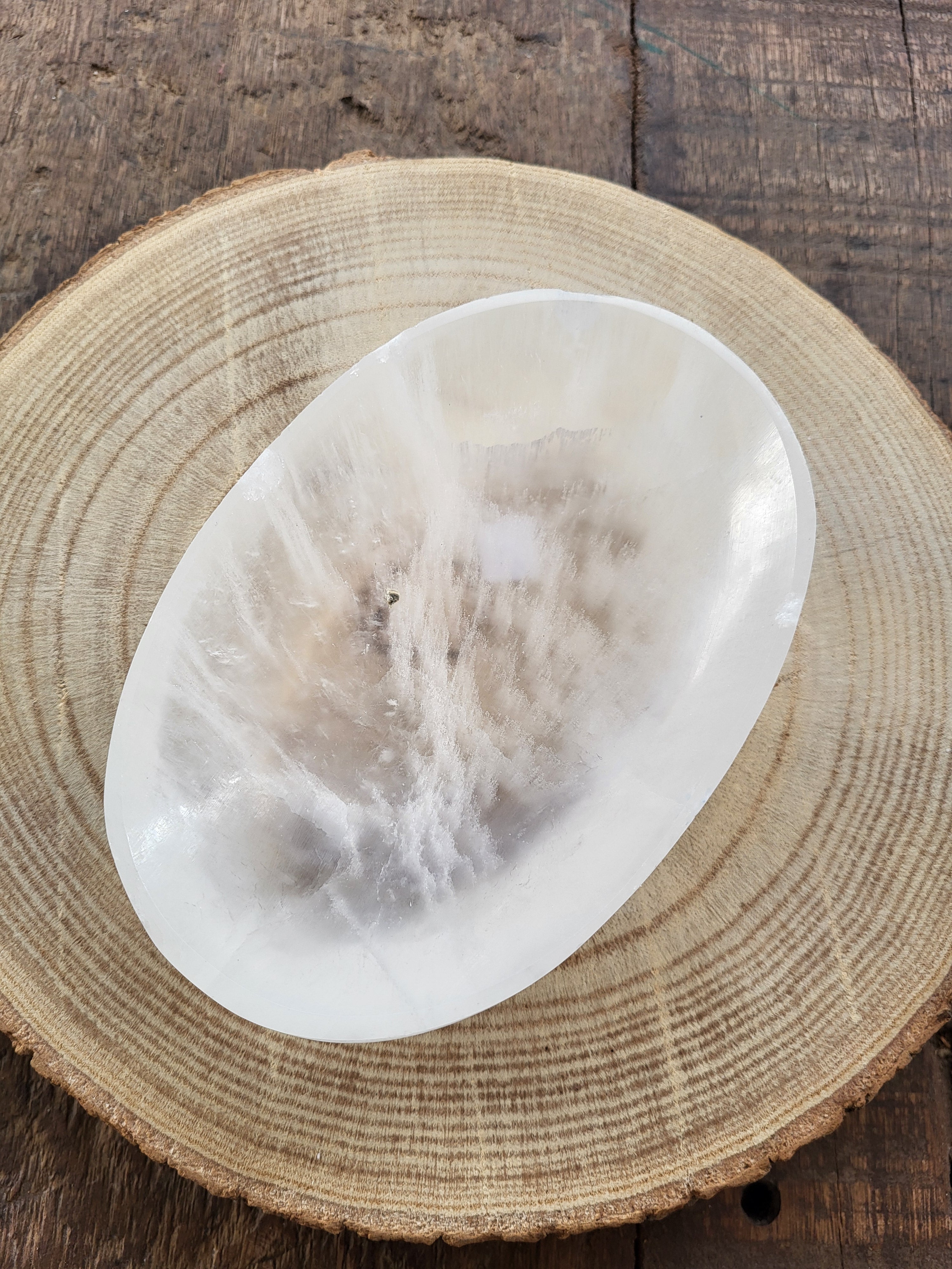 Colocar un cuenco de selenita en casa, estudio o espacio de meditación protege y equilibra el entorno, fomentando paz interior y claridad mental.