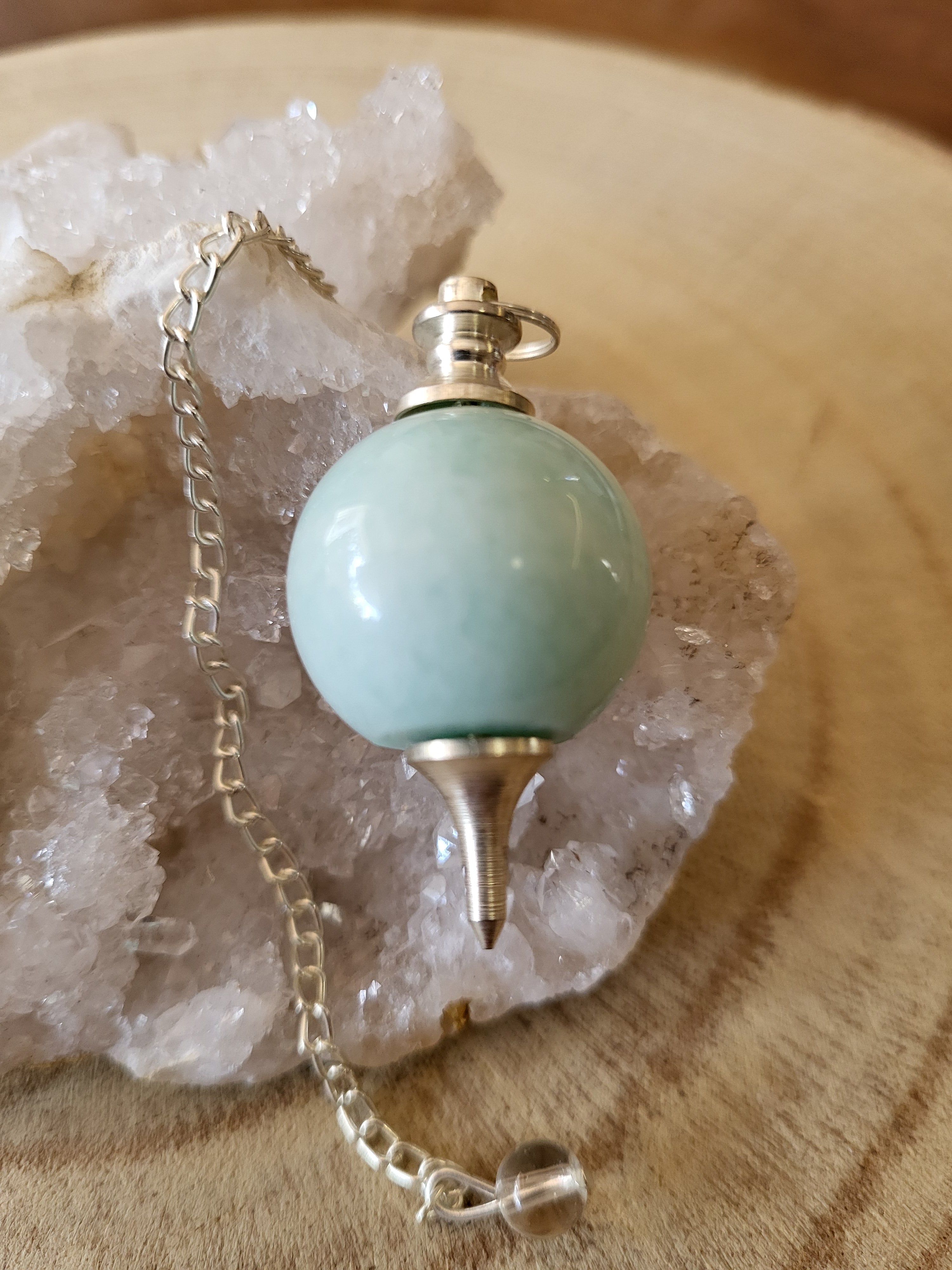 Péndulo de Amazonita Natural – Equilibrio, Comunicación y Protección Energética