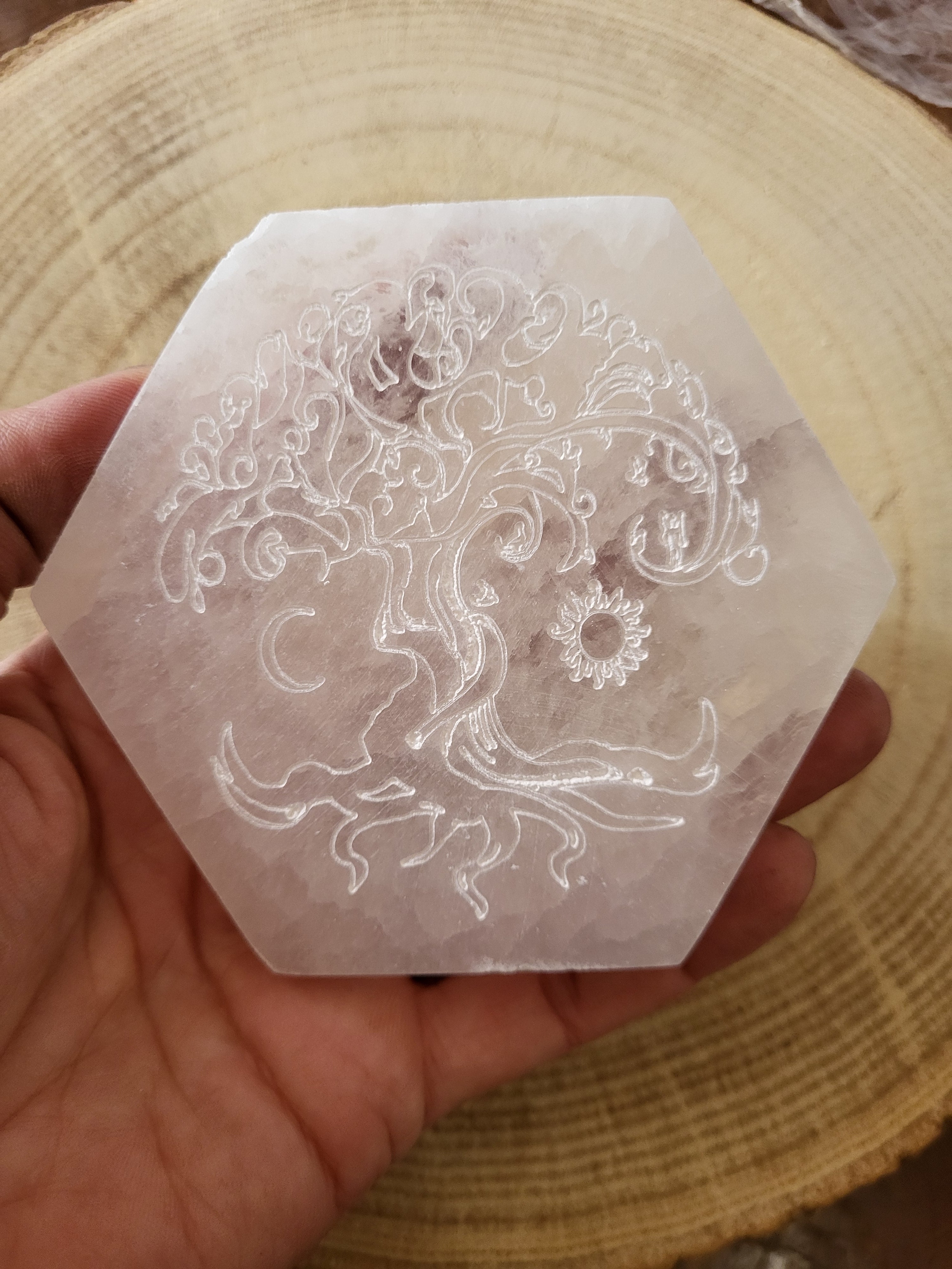 Colocar una placa de selenita en tu hogar, espacio de trabajo o altar aporta paz interior, claridad mental y un flujo energético equilibrado.