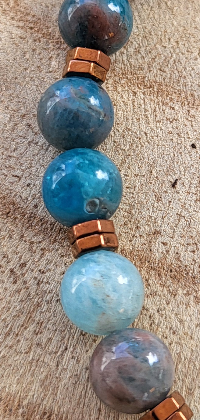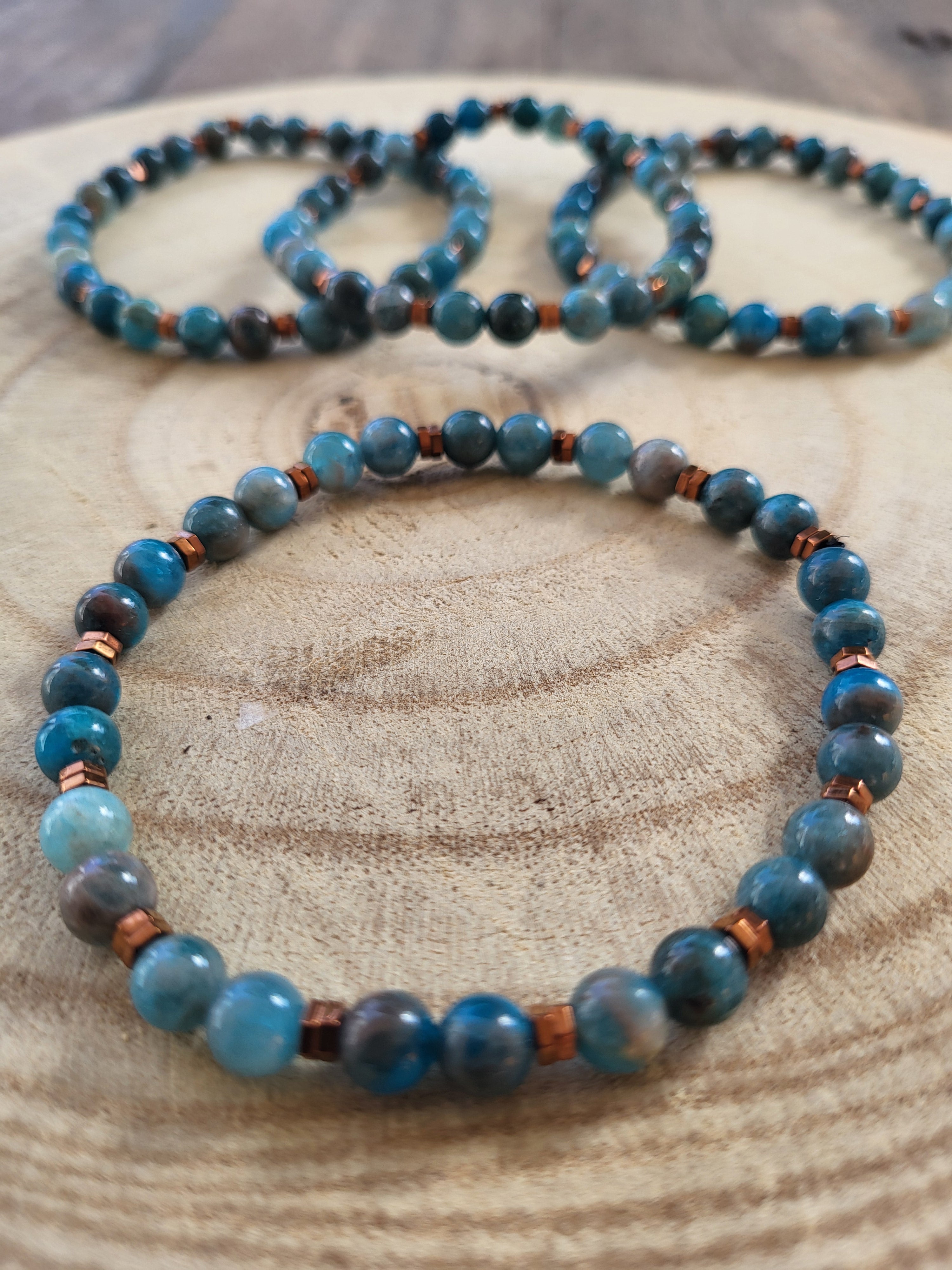 El Apatito estimula la claridad mental, la inspiración y la motivación personal. El cobre potencia su energía, favoreciendo enfoque y determinación. Ideal para momentos de crecimiento y toma de decisiones conscientes.